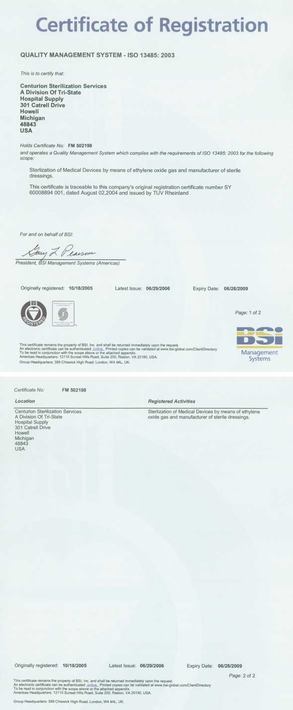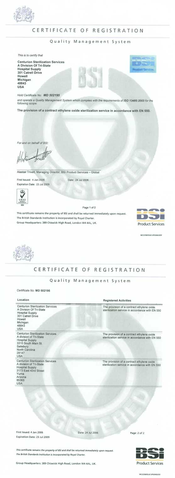 We provide 100% EO contract sterilization. All facilities are ISO13485 and EN550 certified. Each location has a complete on-site laboratory to assist you with your testing needs without the unnecessary costs or delays of transporting samples off-site. Centurion Sterilization also provides complete regulatory assistance including protocol development and a full summarization of your sterilization validation. Facilities in Michigan, North Carolina and Yuma, Arizona.